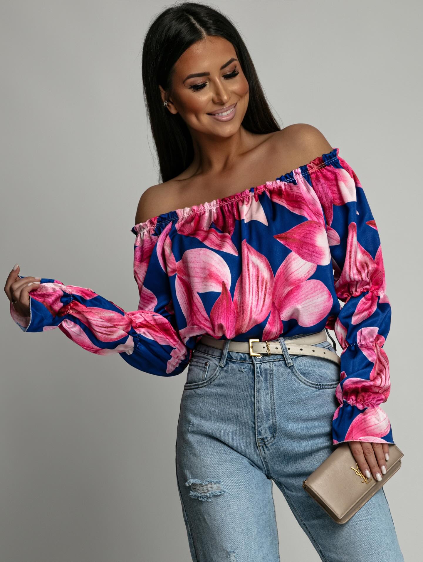 Bluzka hiszpanka satynowa KARINA w kwiaty