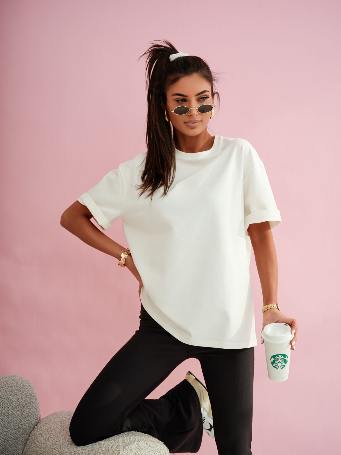 T-shirt MILLA oversize – luźny, komfortowy krój. Wykonany z miękkiej, oddychającej bawełny.