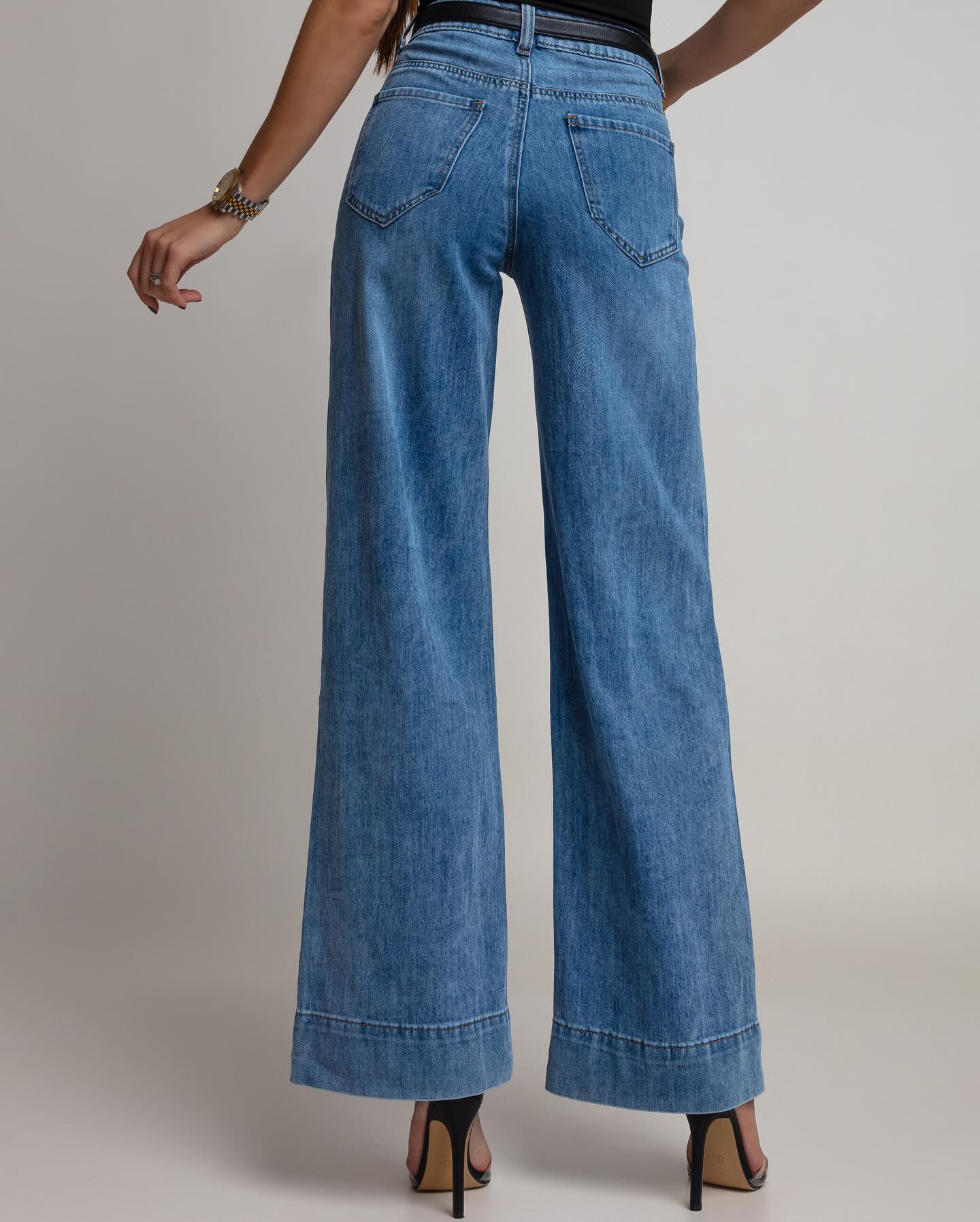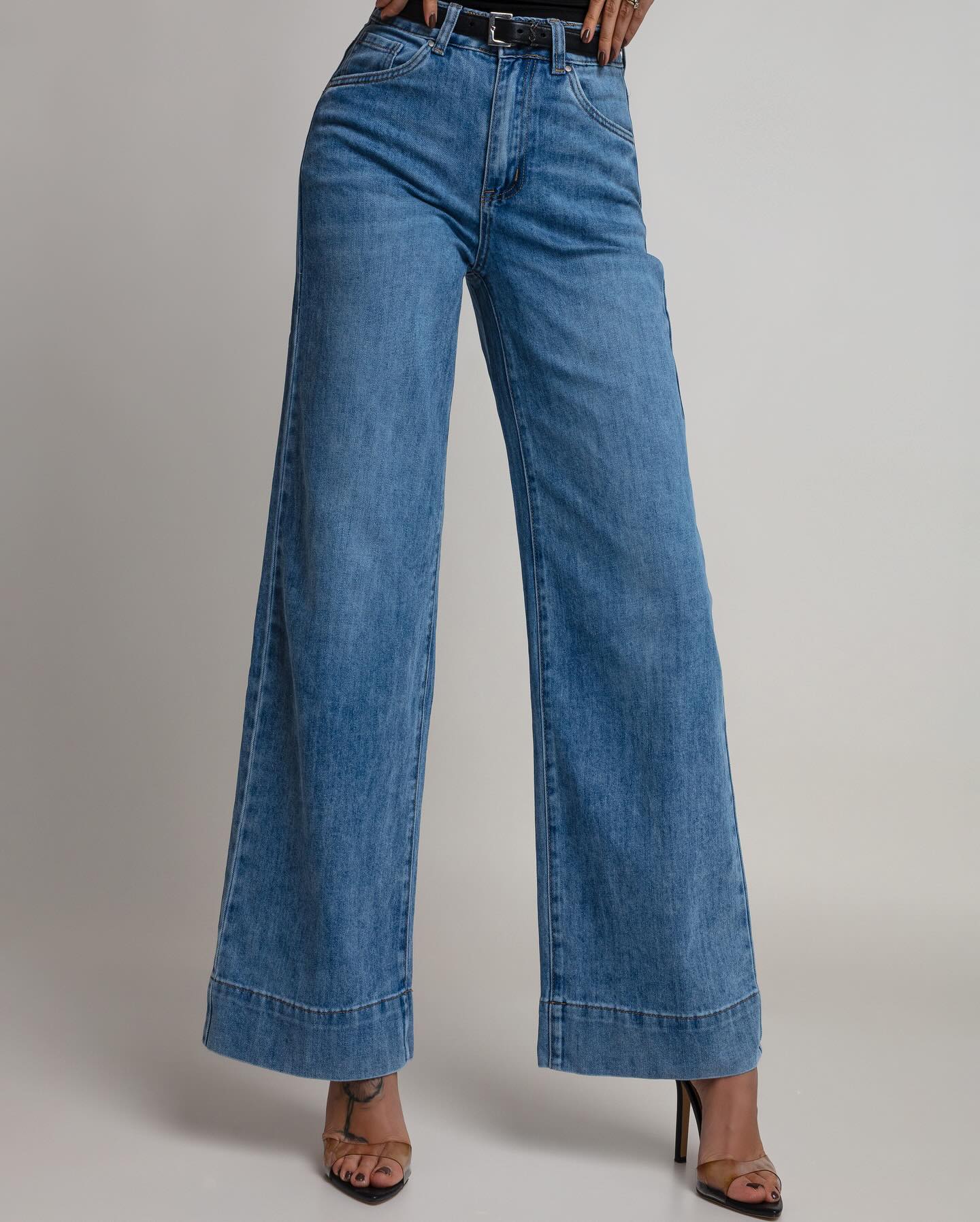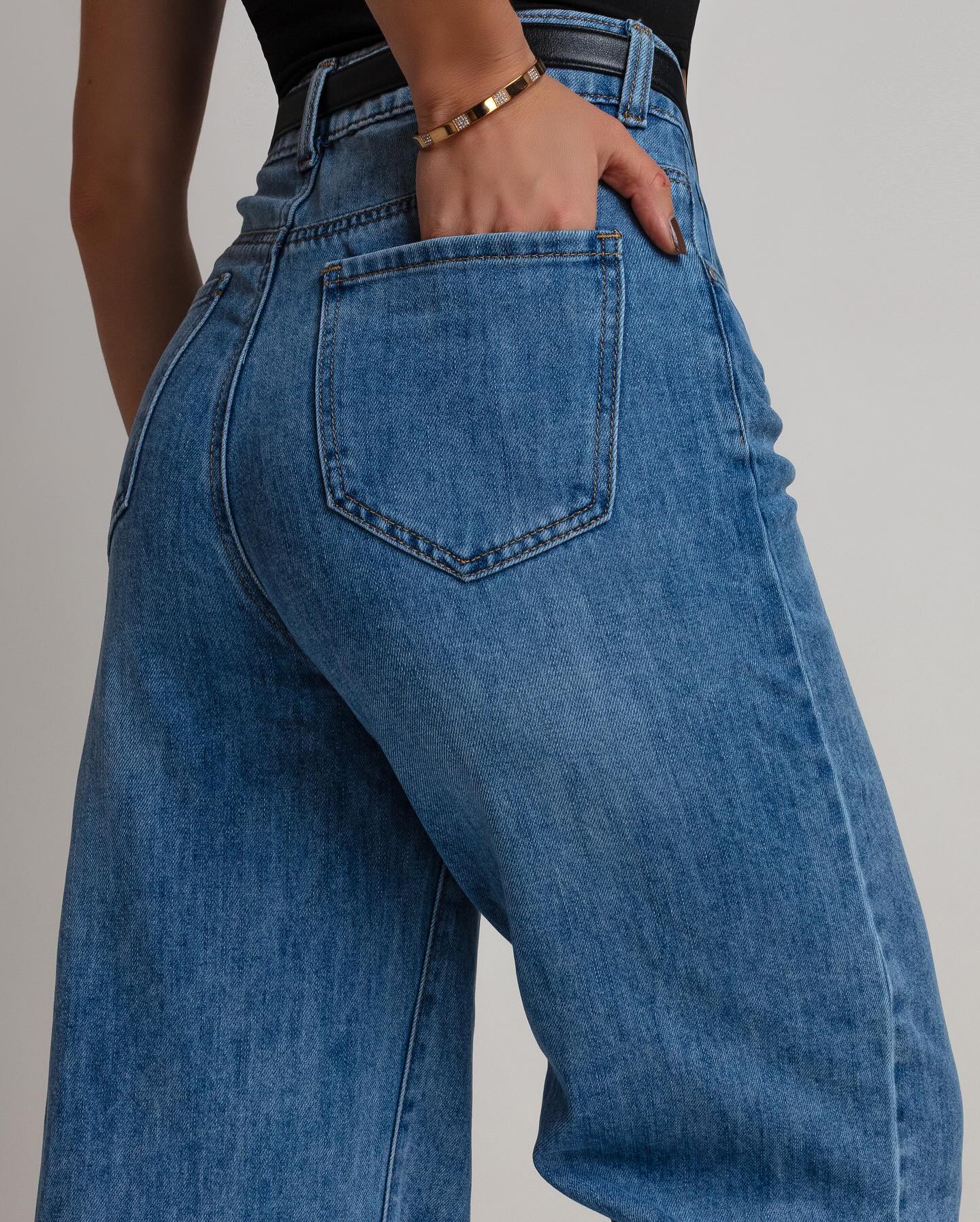 Damskie Jeansy Wide Leg z Wysokim Stanem KIANA Klasyczny Denim