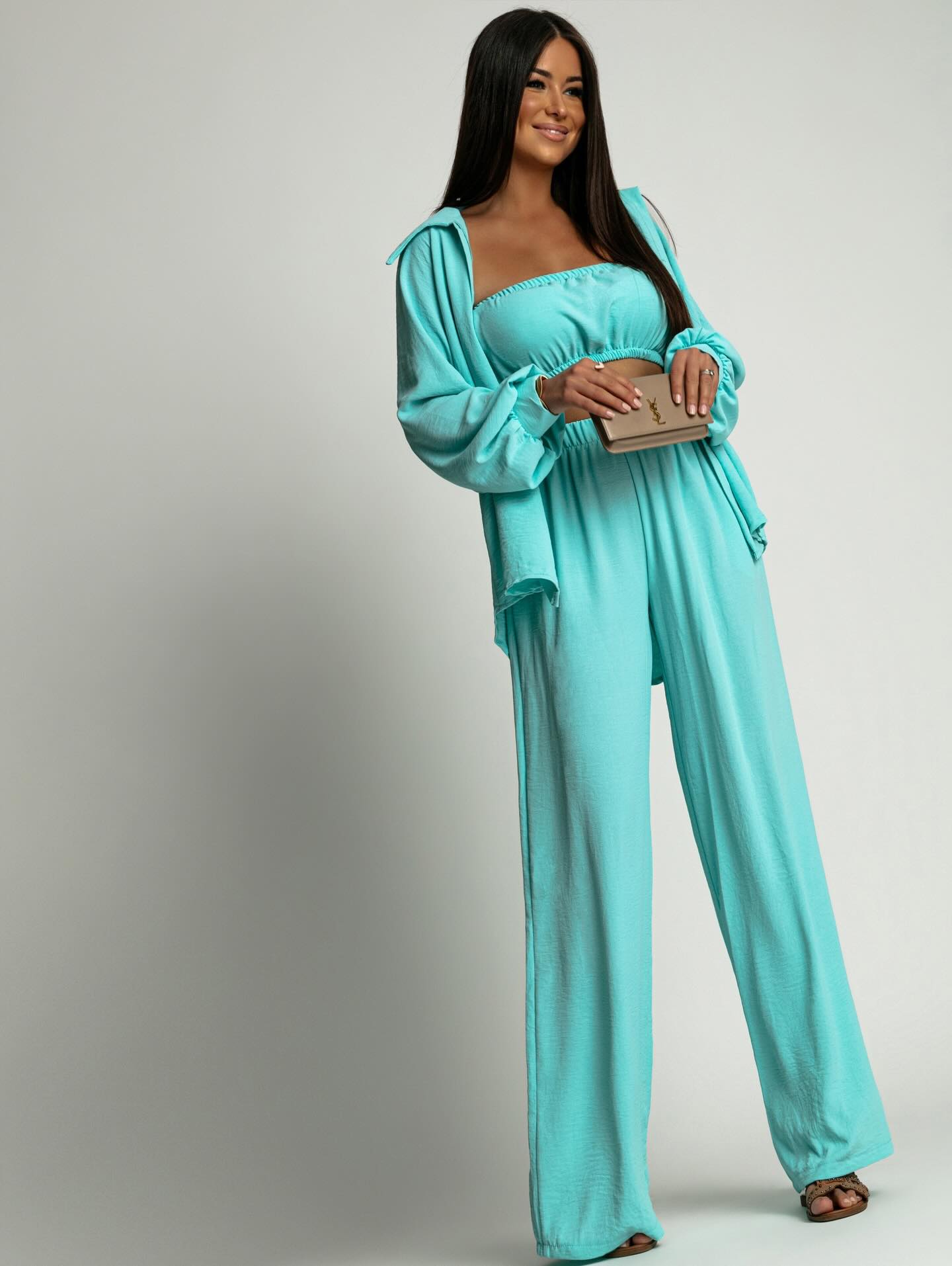 Poczuj powiew letniej świeżości z naszym wyjątkowym, trzyczęściowym kompletem. To idealne połączenie niezobowiązującej elegancji z maksymalnym komfortem, które sprawdzi się zarówno podczas wakacyjnych spacerów, jak i wieczornych wyjść ze znajomymi.