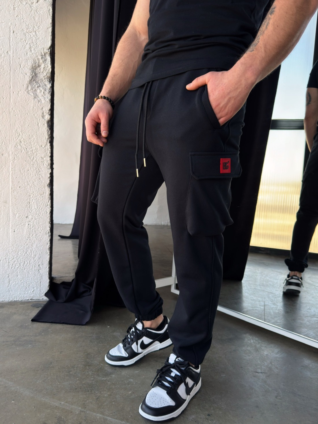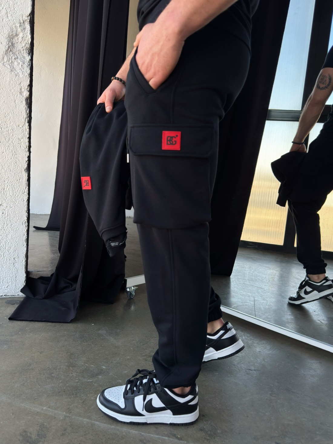 Spodnie męskie BG PALERMO z wysokiej jakości bawełny nieocieplanej. Klasyczne bojówki dresowe z żelową aplikacją z logo marki w kolorze czerwonym na nogawce. Kieszenie w boku oraz gumka ze sznurkiem w pasie. Spodnie wykończone gumkami.