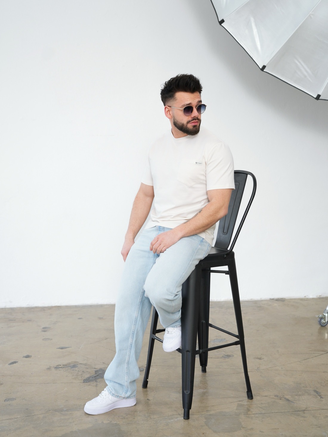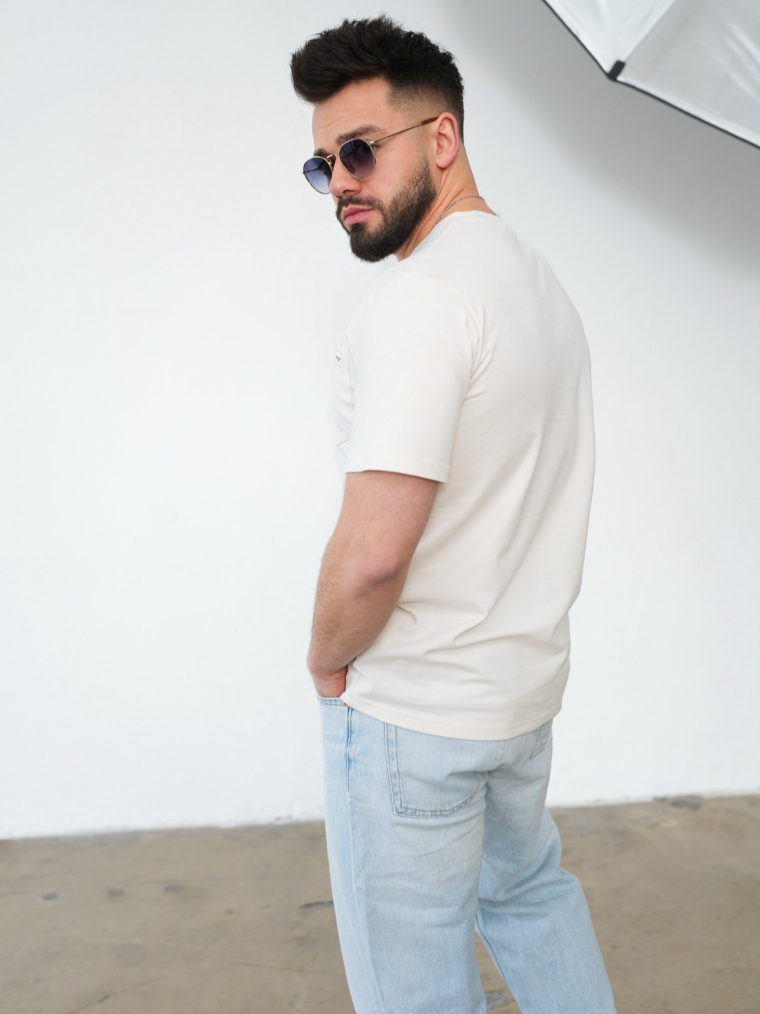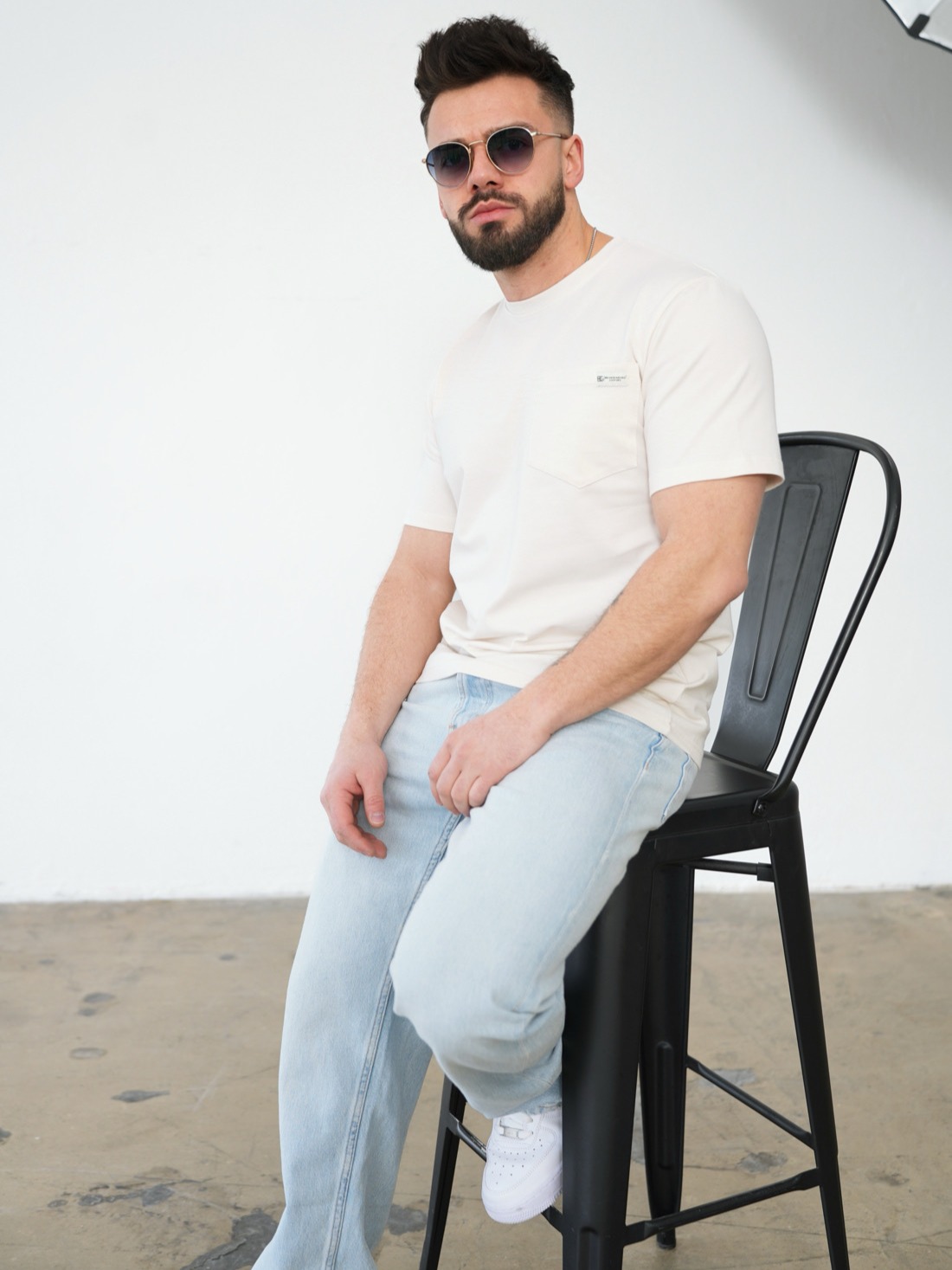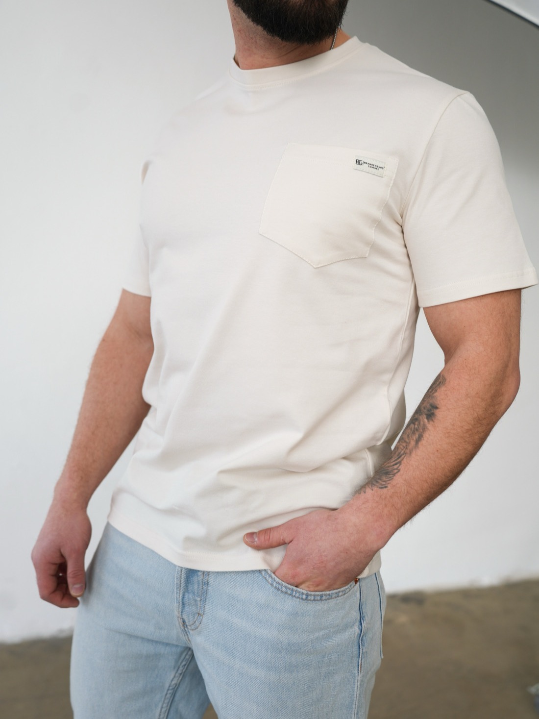 Męski t-shirt BG SUNNY z najwyższej jakości elastycznej bawełny. Krój regular. Na lewej piersi kieszonka a na podwinięciu kieszonki ozdobna naszywka z logo marki BG Brandenburg Couture.