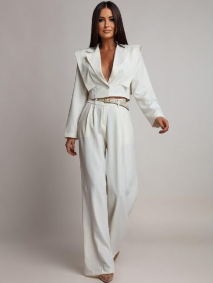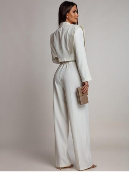 Eleganckie Szorty z Wysokim Stanem i Zaszewkami ecru PRODUKT POLSKI PREMIUM