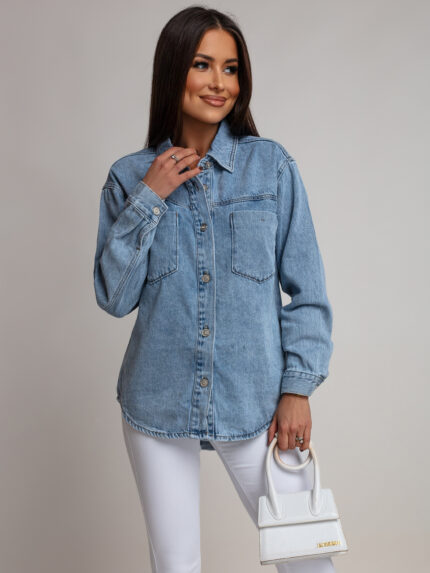 Koszula Roomy z wiskozy – print kwiat ecru błękit beż PRODUKT POLSKI PREMIUM